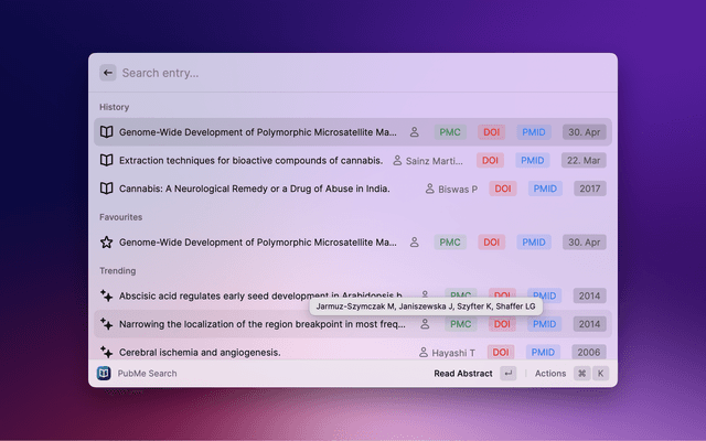 Disclaimer: Please note that PubMe is not affiliated with or supported by the NLM or PubMed. The data presented through this extension comes from the PubMed database, which is owned and maintained by NLM.