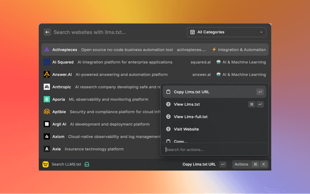 - 🔍 Smart Search: Quickly find websites that implement llms.txt and llms-full.txt proposed standards