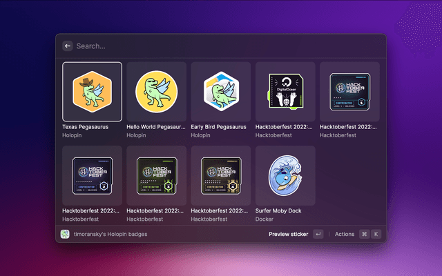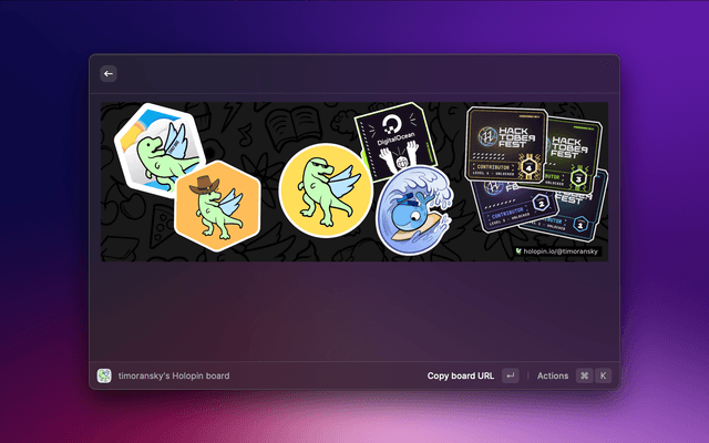 See your Holopin stickers and your Holopin board directly in Raycast.
