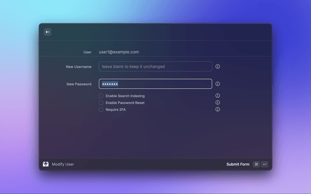 With this extension, you can quickly add or delete domains from your Purelymail account, create or delete users for your domains, create or delete Routing Rules, create or delete app passwords and Check Account Credit.