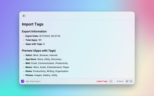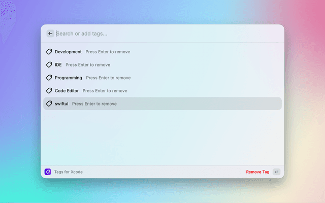 Organize and search your macOS applications with custom tags. A powerful Raycast extension that makes app discovery instant and intuitive.